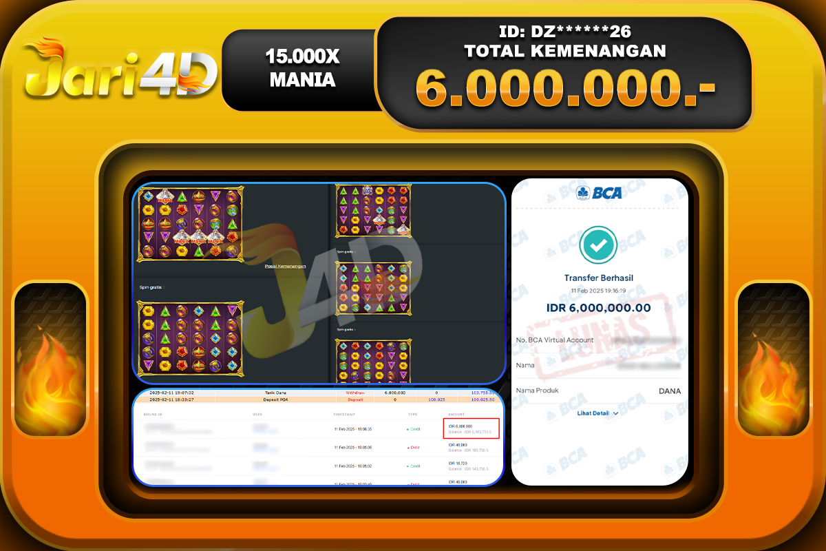 Bukti JP 15.000X MANIA Hari ini Di Situs JARI4D Sebesar Rp.6.000.000,- Tuntas !!