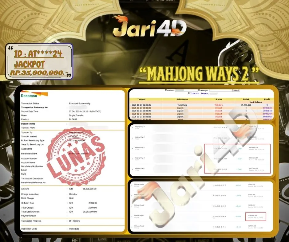 Bukti JP MAHJONG WAYS 2 Hari ini Di Situs JARI4D Sebesar Rp.35,000,000,- Tuntas !!