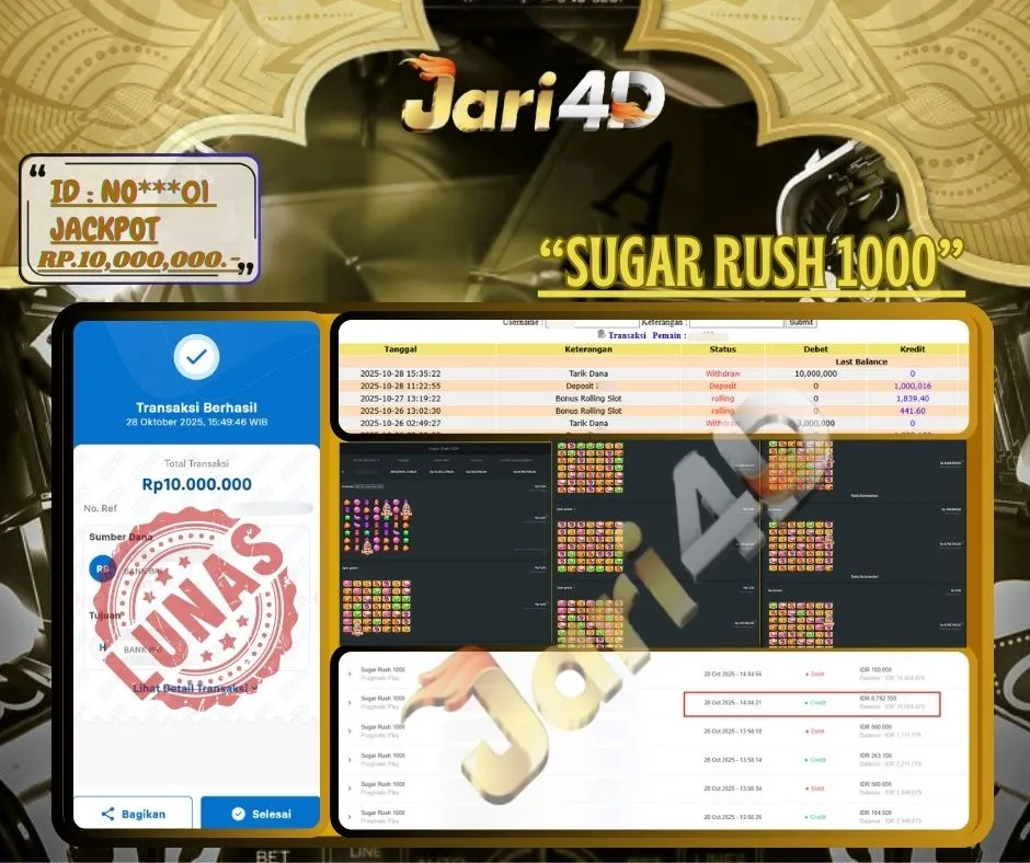 Bukti JP SUGAR RUSH 1000 Hari ini Di Situs JARI4D Sebesar Rp.10,000,000,- Tuntas !!