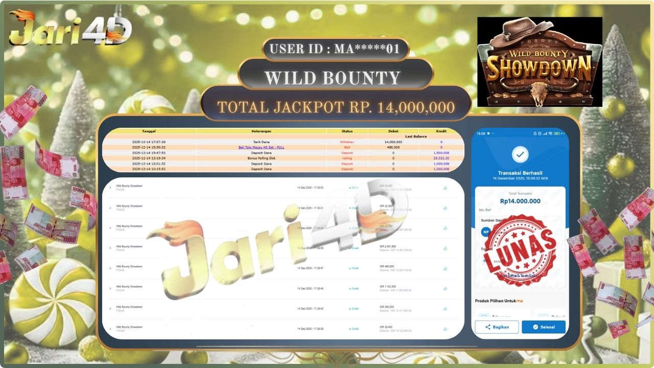 Bukti JP WILD BOUNTY Hari ini Di Situs JARI4D Sebesar Rp.14,000,000,- Tuntas !!