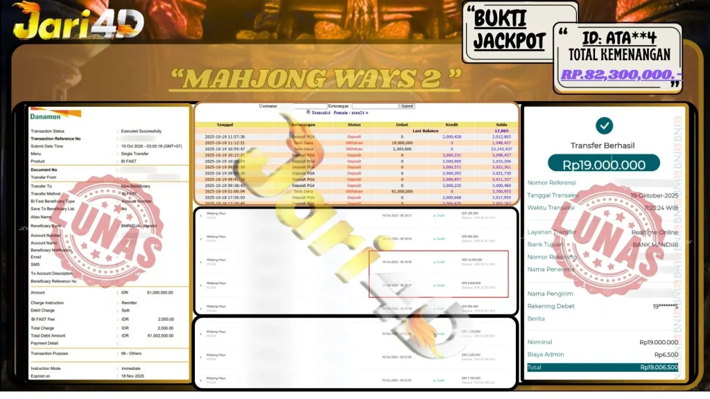 Bukti JP MAHJONG WAYS 2 Hari ini Di Situs JARI4D Sebesar Rp.82,300,000,- Tuntas !!