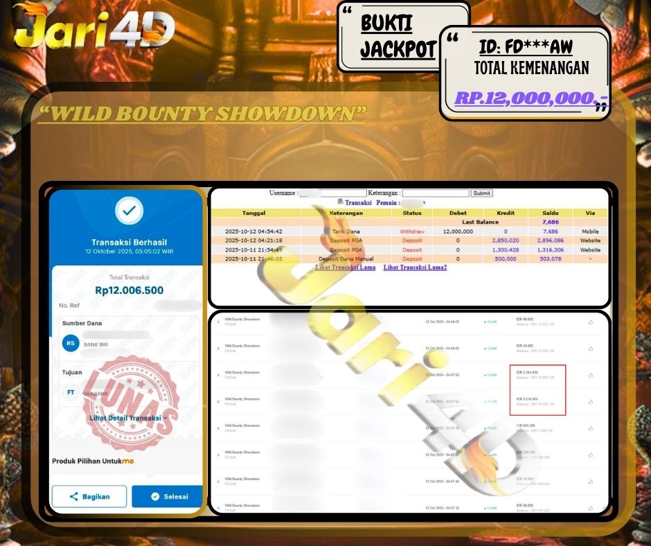 Bukti JP WILD BOUNTY SHOWDOWN Hari ini Di Situs JARI4D Sebesar Rp.12,000,000,- Tuntas !!
