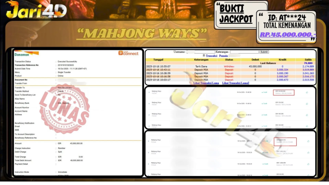 Bukti JP MAHJONG WAYS Hari ini Di Situs JARI4D Sebesar Rp.45,000,000,- Tuntas !!