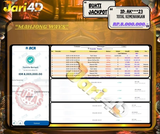 Bukti Withdraw Kemenangan Jackpot Di Situs Jari4D Jari4d Merupakan Situs Judi Online Togel , Slot , Livecasino Resmi Paling Terpercaya Sepanjang Tahun Sampai Saat Ini 2025. Jari4D Juga Merupakan Situs Online Dengan Licensi Kemenangan Jackpot Berapapun Pasti Di Bayar Tuntas !!! Tanpa Sedikit-Pun Basaa Basi Dari Pihak Web Dan Management Withdraw Jari4D. Kemenangan Berapapun […]