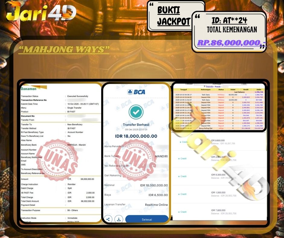 Bukti JP MAHJONG WAYS Hari ini Di Situs JARI4D Sebesar Rp.86,000,000,- Tuntas !!