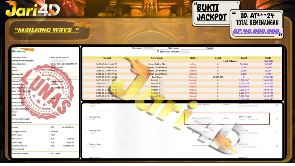 Bukti Withdraw Kemenangan Jackpot Di Situs Jari4D Jari4d Merupakan Situs Judi Online Togel , Slot , Livecasino Resmi Paling Terpercaya Sepanjang Tahun Sampai Saat Ini 2025. Jari4D Juga Merupakan Situs Online Dengan Licensi Kemenangan Jackpot Berapapun Pasti Di Bayar Tuntas !!! Tanpa Sedikit-Pun Basaa Basi Dari Pihak Web Dan Management Withdraw Jari4D. Kemenangan Berapapun […]